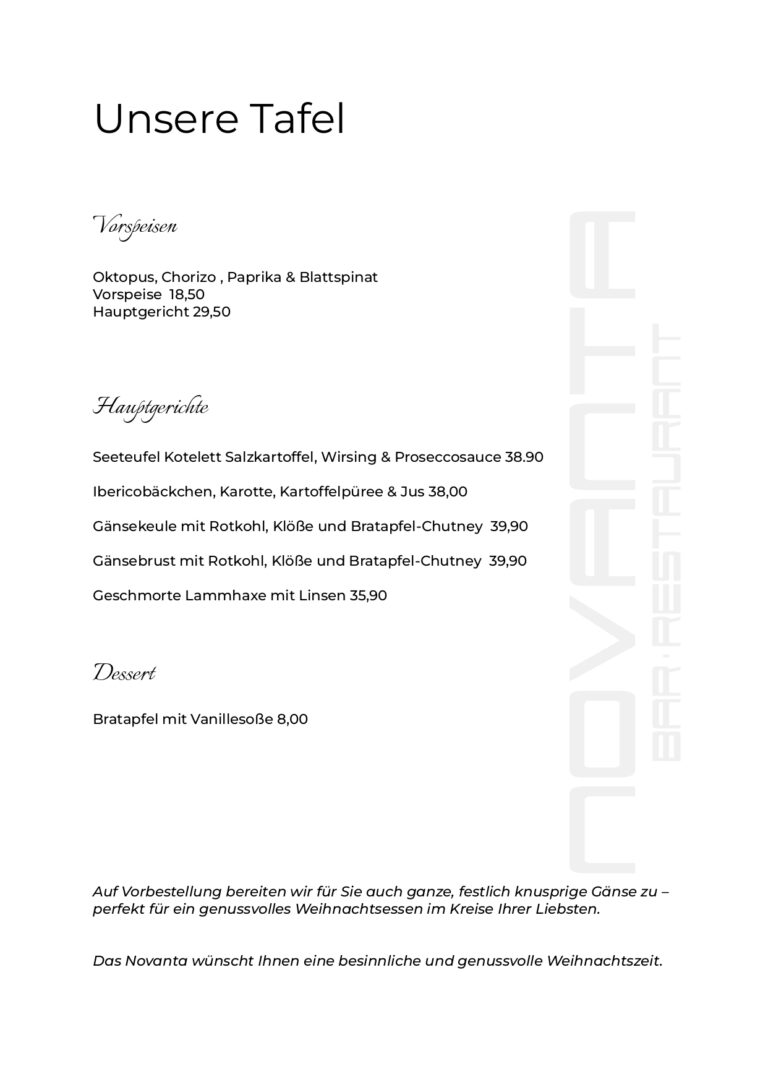 Unsere Speisekarte – Mediterraner Genuss am Baldeneysee